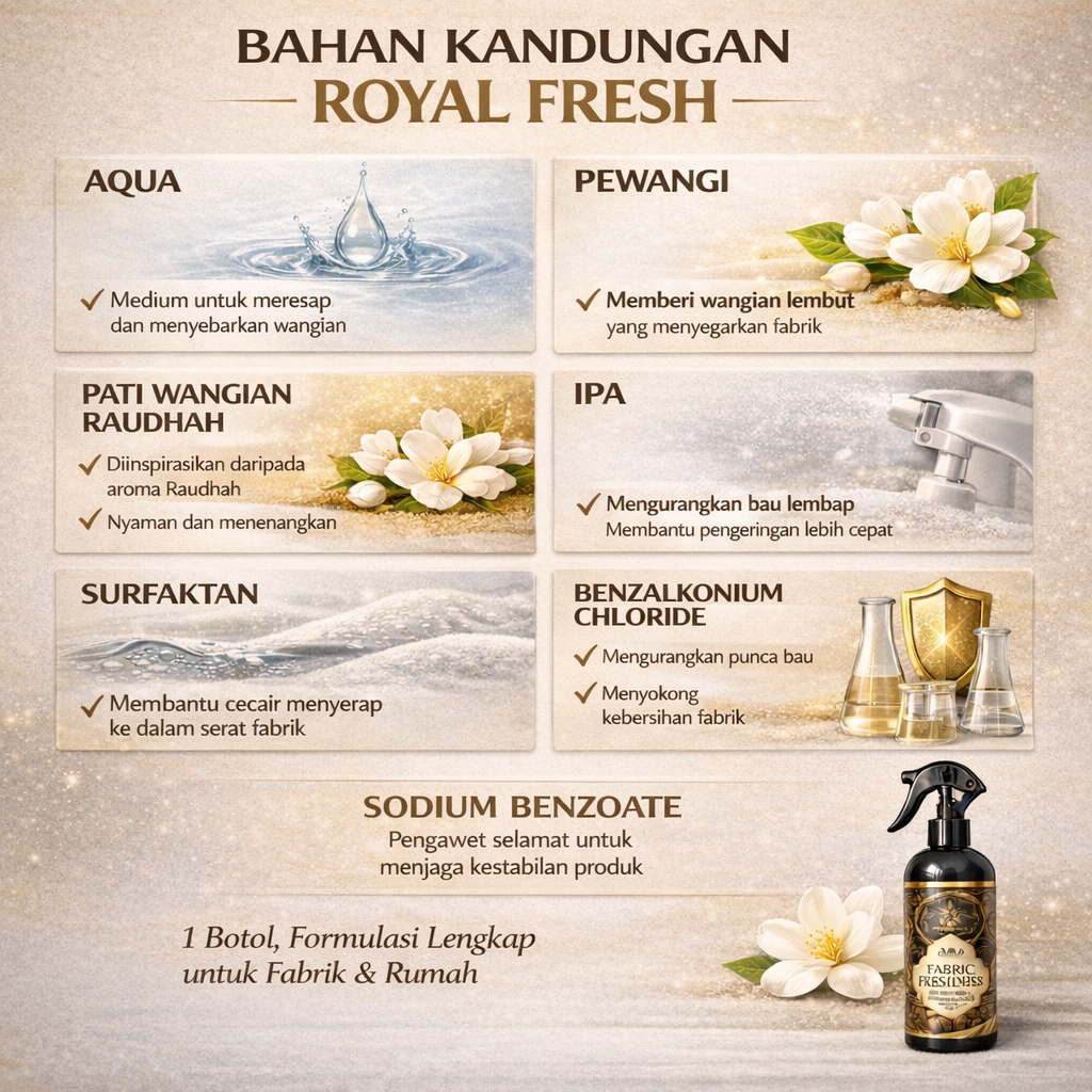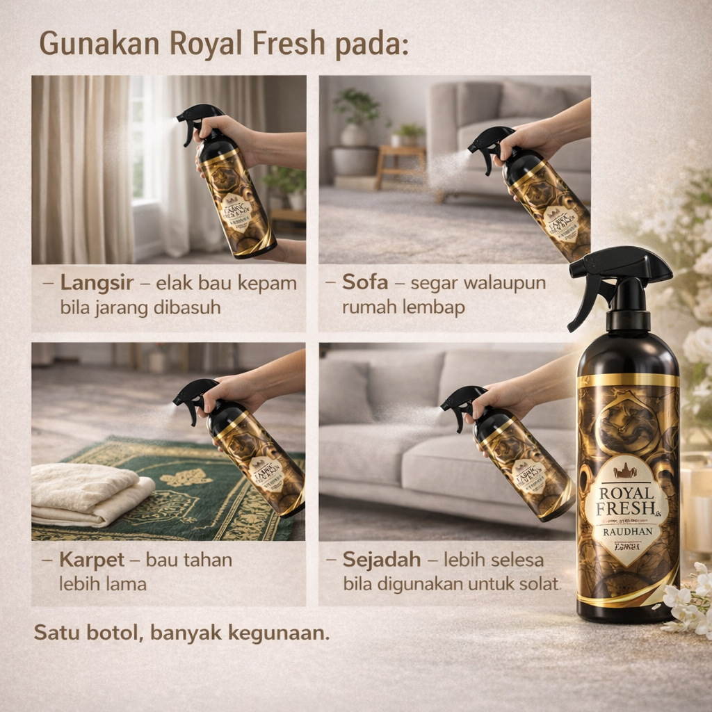 ROYAL FRESH : FABRIC FRESHENER RAUDHAH BANTU SELESAIKAN MASALAH ANDA.
