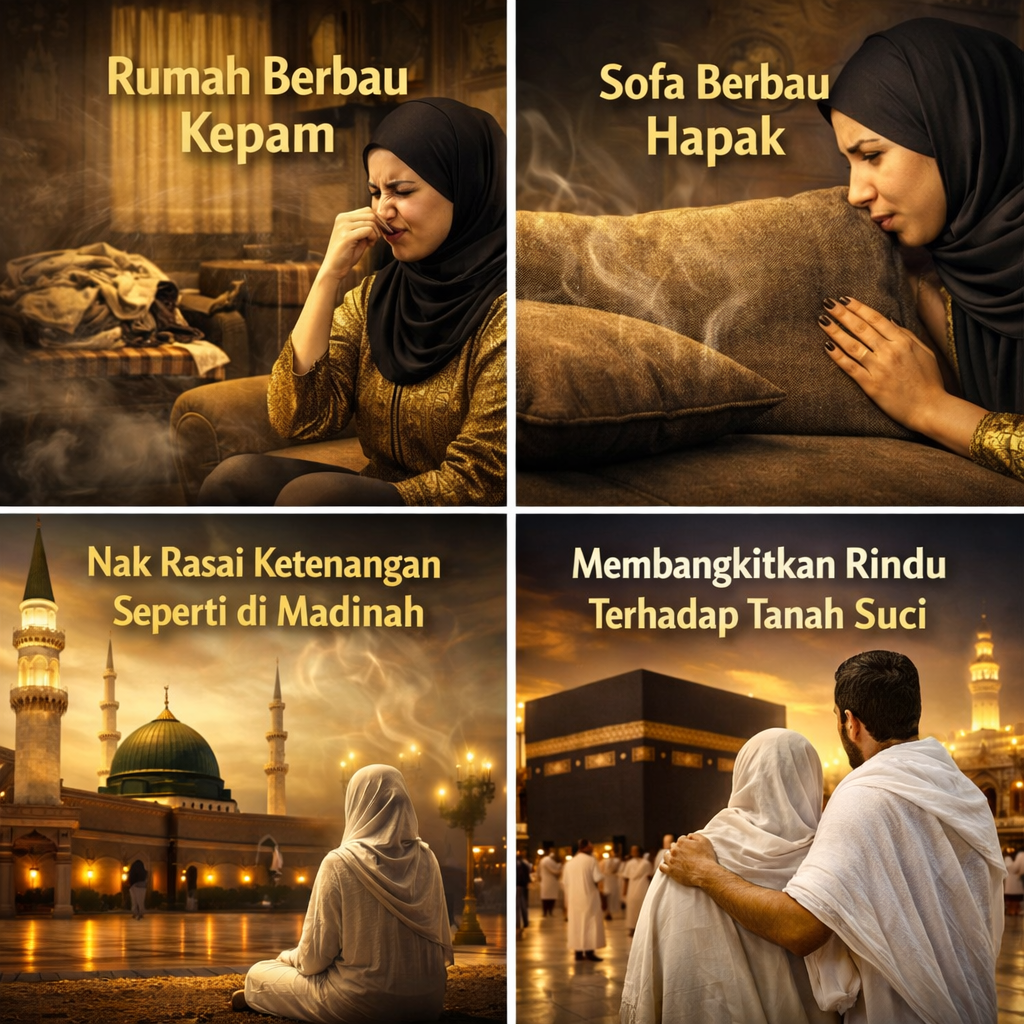 Aroma yang membangkitkan ketenangan ibadah, diinspirasikan daripada pengalaman berada di Raudhah, masjid Nabawi – Menggunakan pati wangian dari Madinah.
