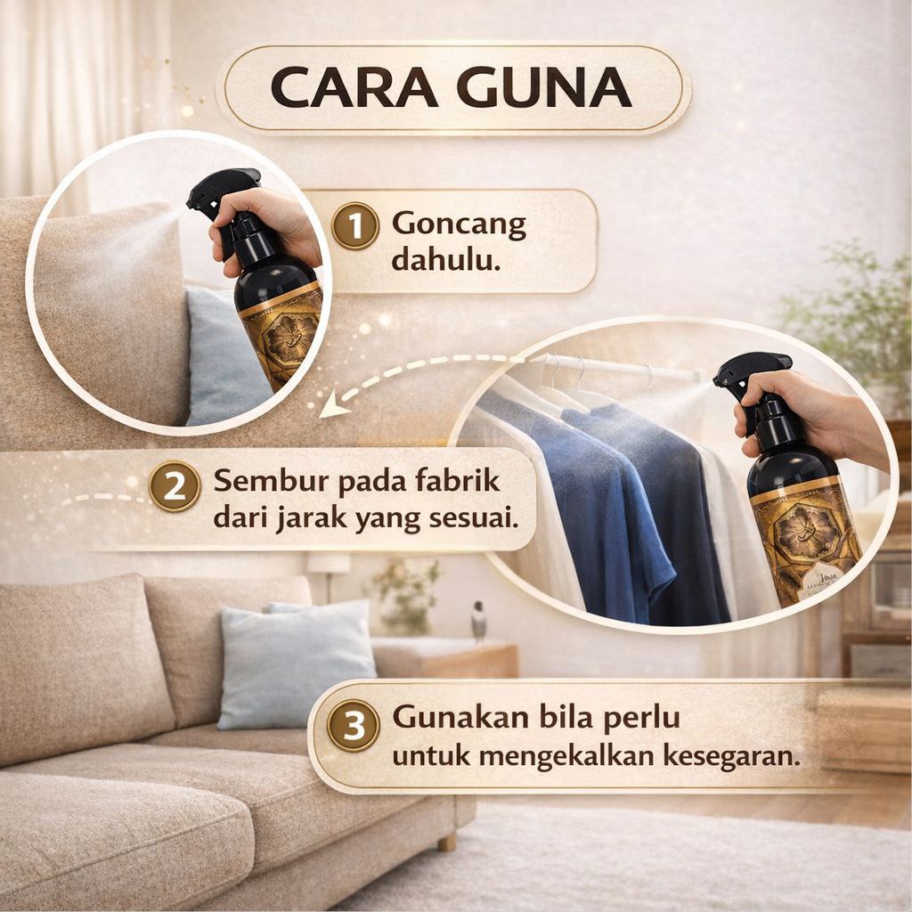 ROYAL FRESH FABRIC FRESHENER- SOLUSI UNTUK MASALAH RUMAH BAU KEPAM DENGAN AROMA RAUDHAH.